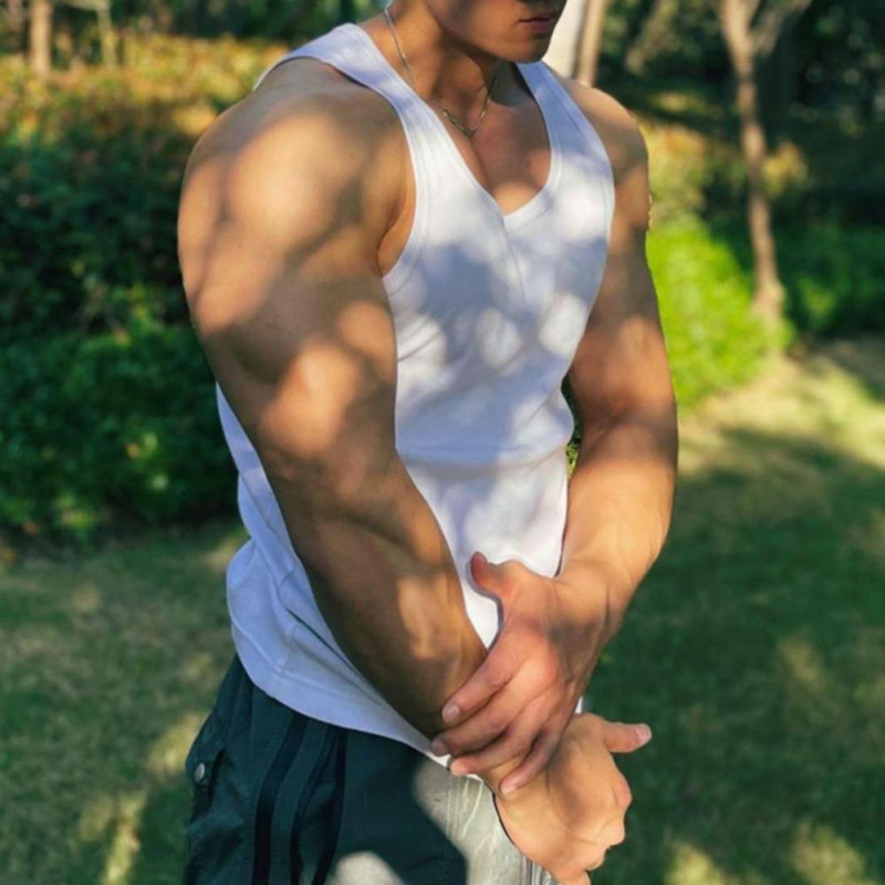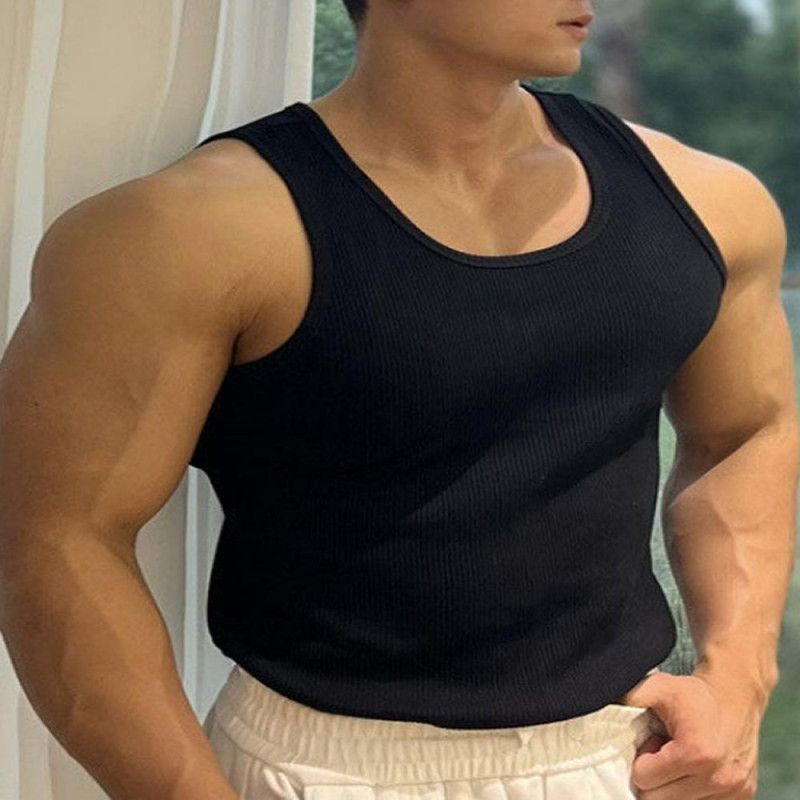 Item Name: Men Vest Material: Polyester Fiber, Cotton Blend Style: Simple Gender: Men Size Type: Regular Neck Type: O-Neck Sleeve Length: Sleeveless Length: Regular Features: Slim Fit, Solid Color, Ribbed Size Details: Size: M, Bust: 90cm/35.43", Clothes Length: 68cm/26.77" (Approx.) Size: L, Bust: 94cm/37.01", Clothes Length: 70cm/27.56" (Approx.) Size: XL, Bust: 98cm/38.58", Clothes Length: 72cm/28.35" (Approx.) Size: XXL, Bust: 102cm/40.16", Clothes Length: 74cm/29.13" (Approx.) Size: XXXL, Bust: 106cm/41.73", Clothes Length: 76cm/29.92" (Approx.)