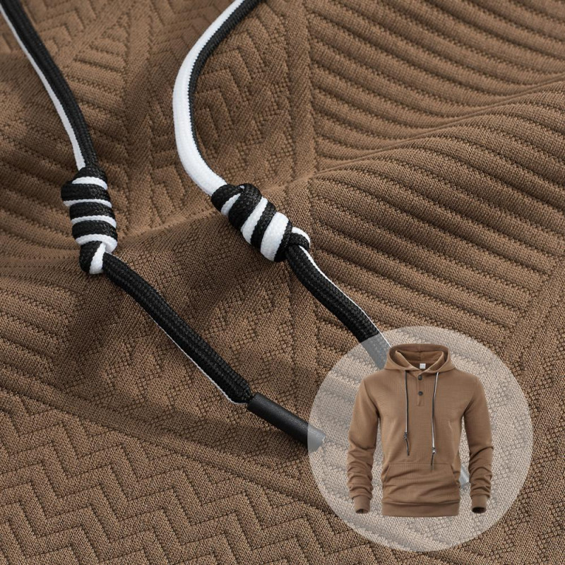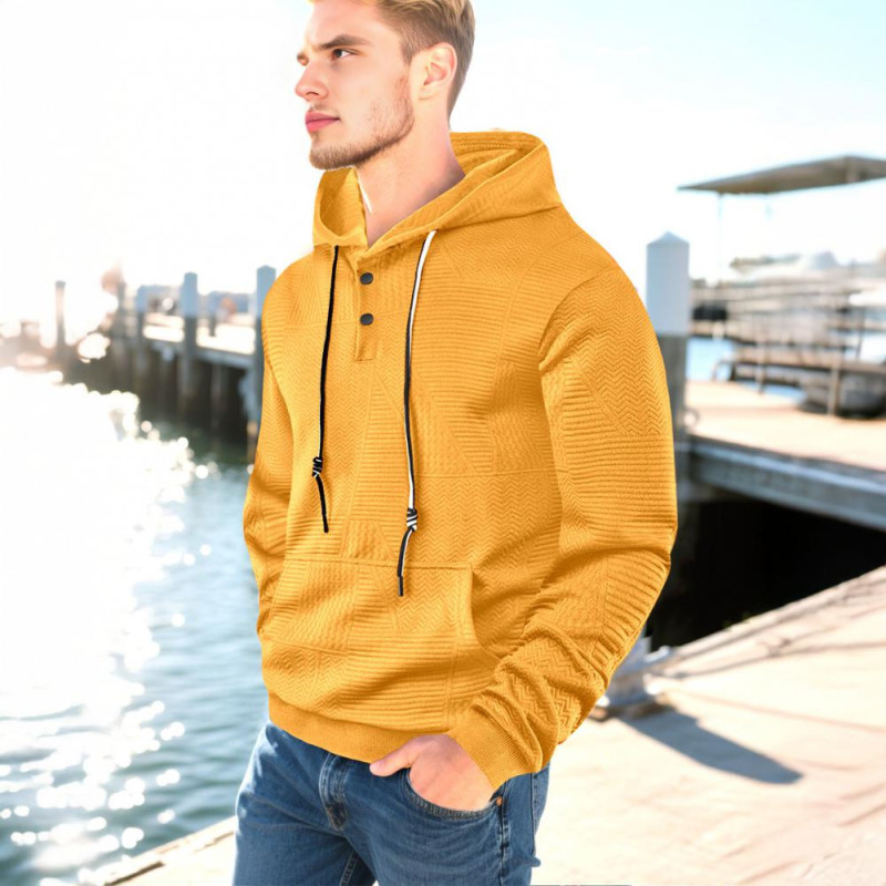 Men Hoodie Jacquard Texture Hooded Drawstring Long Sleeve Pullover Tops with Front Pocket Solid Color Spring Autumn Tops