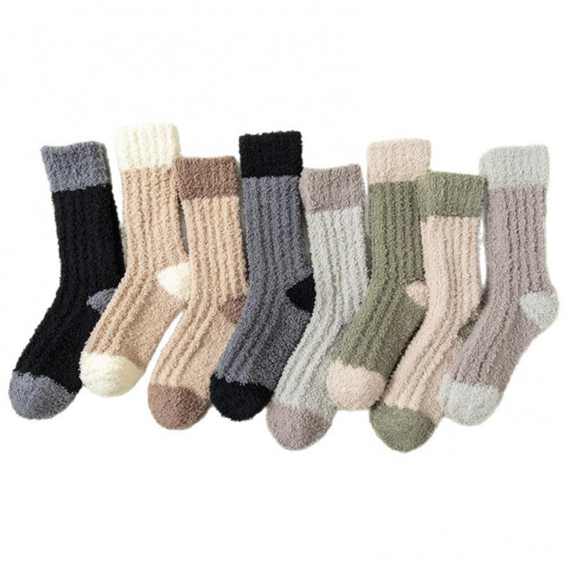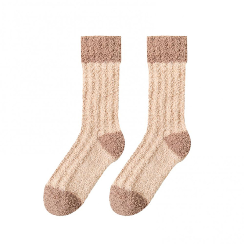 Item Name: Women Socks Material: Coral Velvet Function: Keep Warm Pattern: Color Block Packaging Form: Bag Features: Thick, Keep Feet Warm, Stretch Size Details: Suitable: for Size 35-40