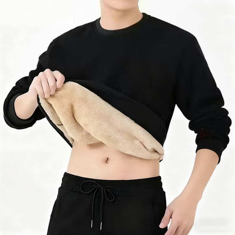 Men Fleece Lined Sweatshirt Warm Winter Pullover Crew Neck Autumn Thickened Basic Top for Daily Wear Sports Street Work