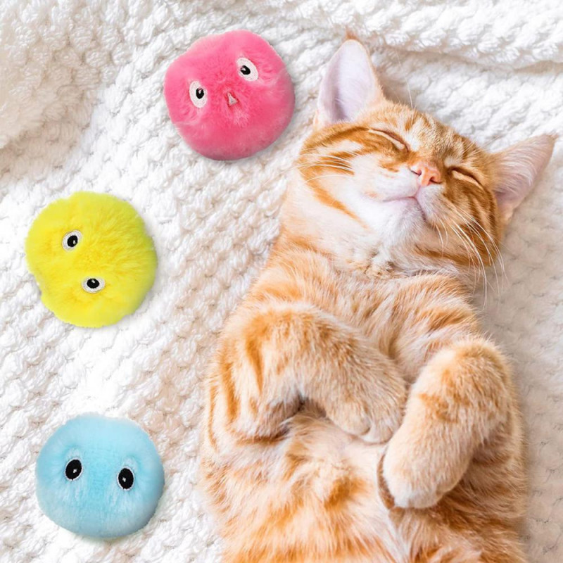 Chirping Ball Cat Toy Fluffy Plush Balls with Sound Interactive Pom Pom Balls Kitten Kicker Toy with Catnip for Indoor Cats