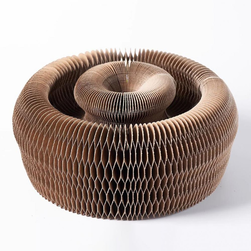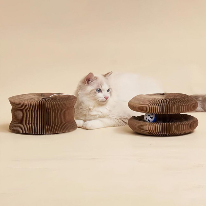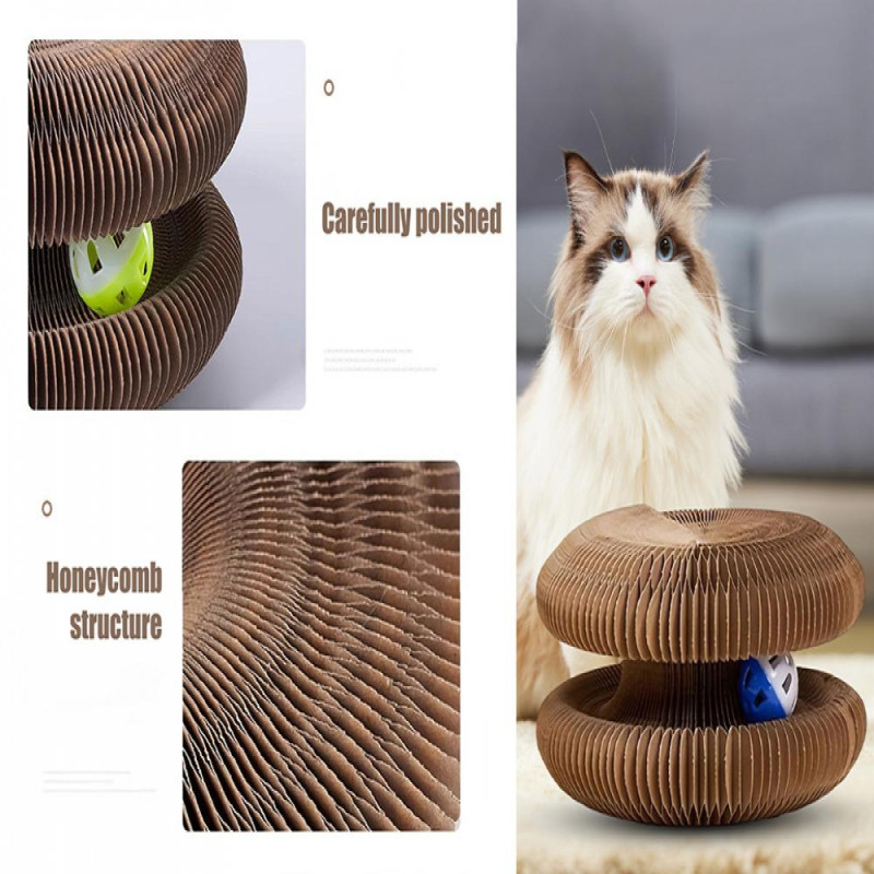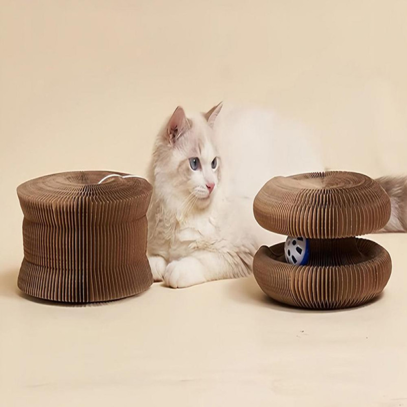 Description: The foldable and portable cat scratch board is a versatile toy that can be transformed into various shapes, providing endless entertainment for your feline friend. Made of high-quality corrugated paper and equipped with a bell ball inside, this interactive toy is designed to satisfy your cat's natural scratching instincts while protecting your furniture. The accordion design allows for easy storage when not in use, making it a space-saving solution for your home. Not only does this toy keep your cat engaged and active, but it also serves as a stress-relieving tool for pet owners. Enjoy hours of fun with your furry companion with this non-toxic and durable indoor toy.