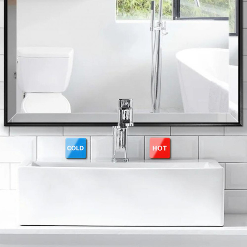 2 Pairs Acrylic Hot Cold Sign Waterproof Self-adhesive House Kitchen Bathroom Office Water Temperature Indication Sign Round Square Warning Sign