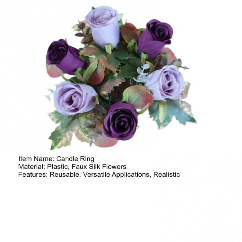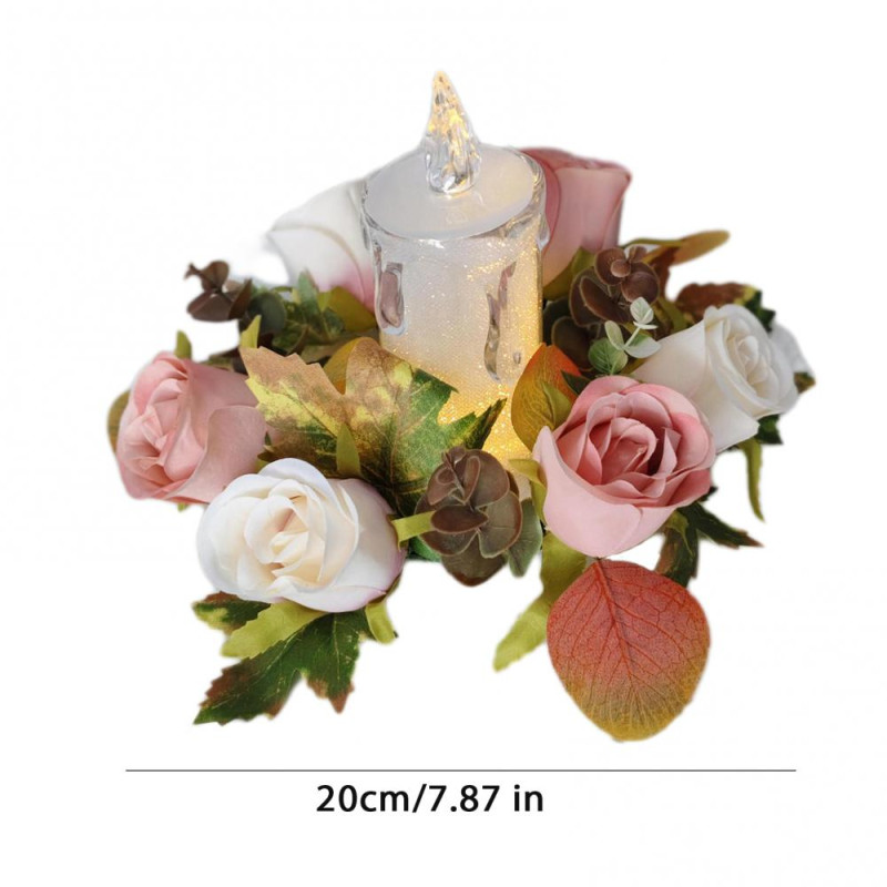 Item Name: Candle Ring Material: Plastic, Faux Silk Flowers Features: Reusable, Versatile Applications, Realistic Size Details: Length: 20cm/7.87" (Approx.) Inner Diameter: 9cm/3.54" (Approx.)
