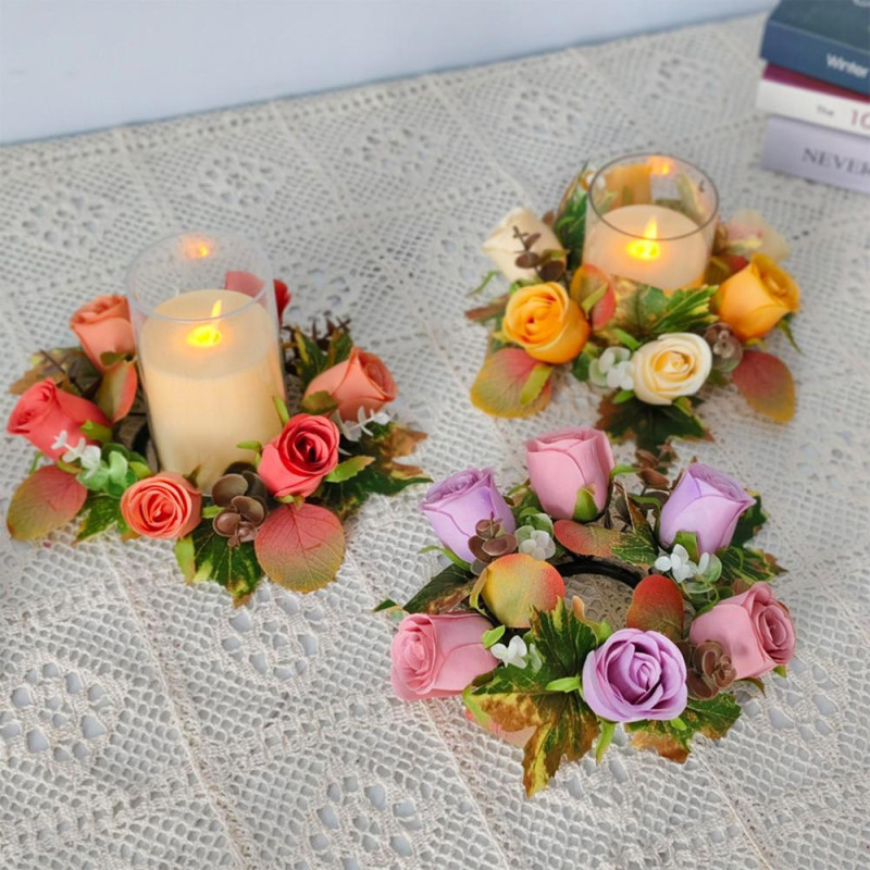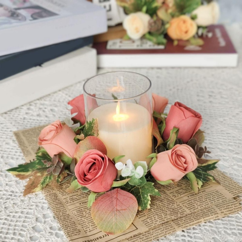 Handcrafted Beauty: Delicately designed with attention to detail, these faux roses offer a lifelike touch that elevates any setting. From wedding centerpieces to everyday home decor accents, this exquisite candle wreath brings enduring beauty to all occasions.