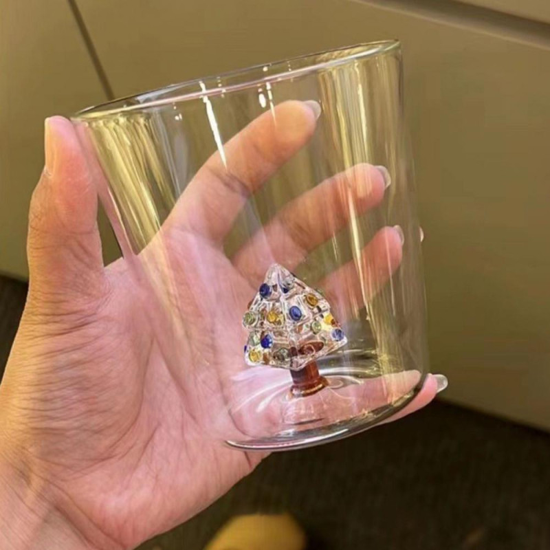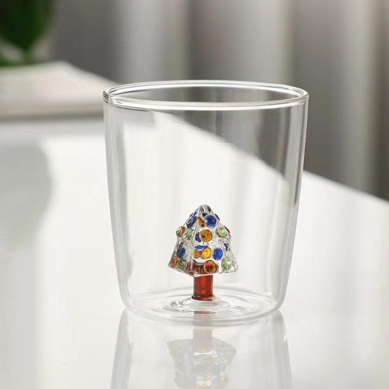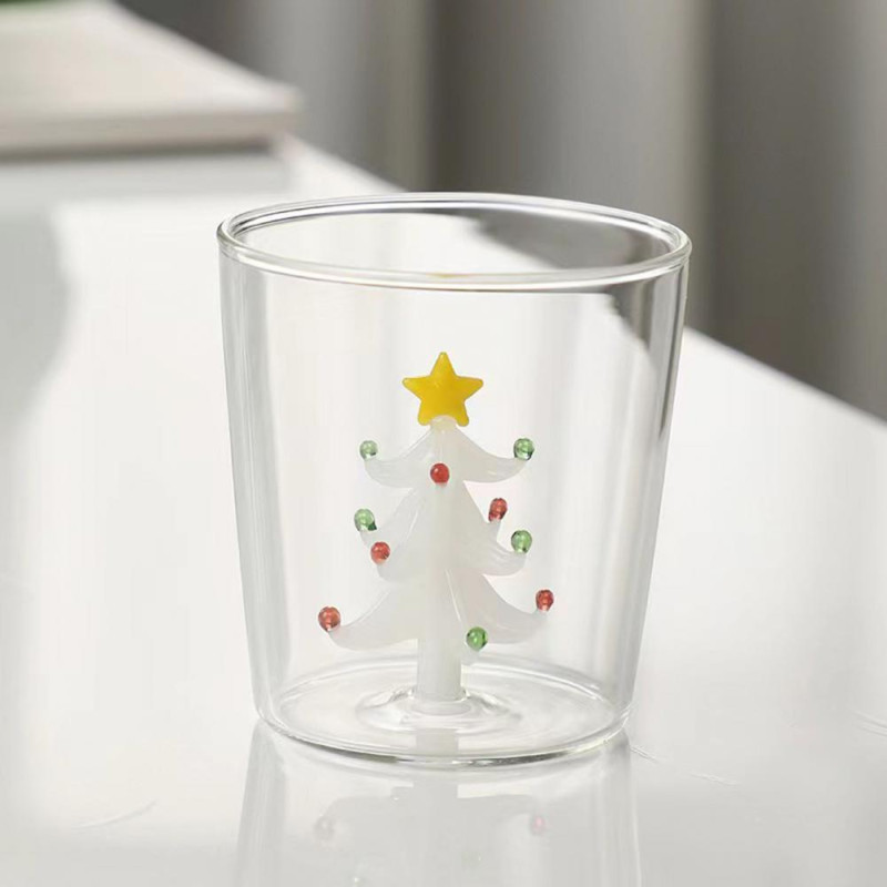3D Christmas Tree Glass Cup High Borosilicate Wine Tumbler for Juice Cocktails Festive Party Drinkware for Holiday Celebrations